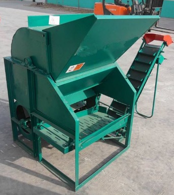 3、摘果機。花生摘果機是將花生莢果從花生蔓秧上摘下的收獲機械。可分為全喂入式和半喂入式兩種。